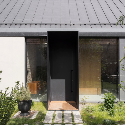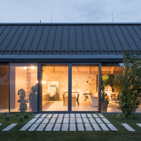Sedlová strecha, fasáda a pozdĺžna hmota domu odkazujú na tradičnú vidiecku zástavbu, typickú pre okrajové územie tejto časti Bratislavy. Pôdorysné usporiadanie stavby je inšpirované trojdielnym slovenským domom. Ústredným priestorom je tzv. pitvor – predsieň tradičného domu orientovaná do záhrady, ktorá pôvodne slúžila ako ochrana domu pred nepriaznivými vplyvmi počasia.
